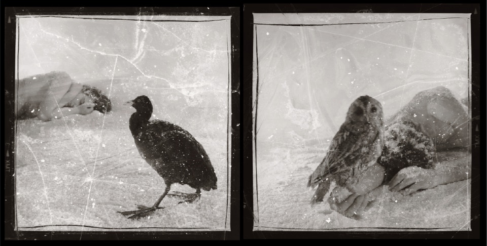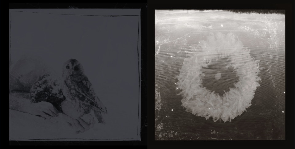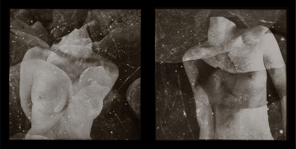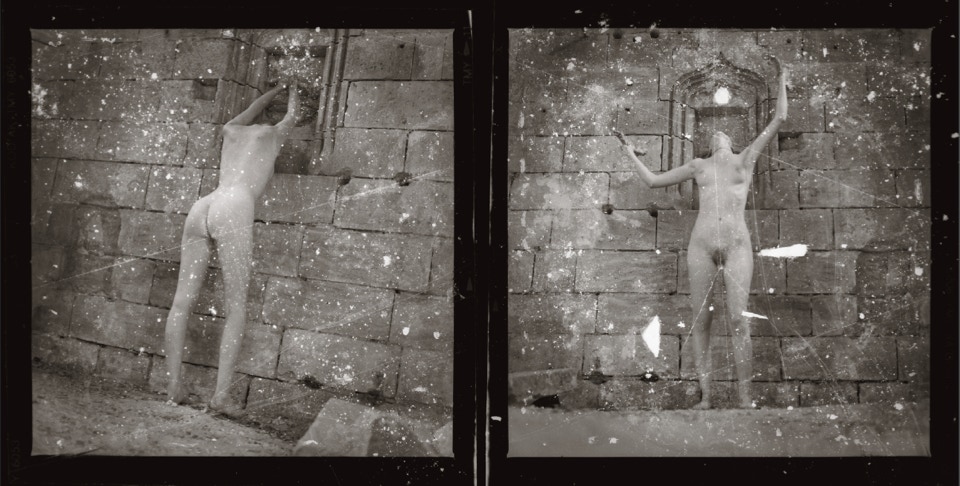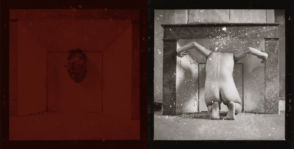 ... Ces photographies argentiques ont été réalisées avec un Hasselblad à la fin du XXe siècle, les négatifs ont ensuite été caressés avec un scalpel, de la colle inflammable, des matières adhésives, des ailes de demoiselles et des cendres de cigarettes...